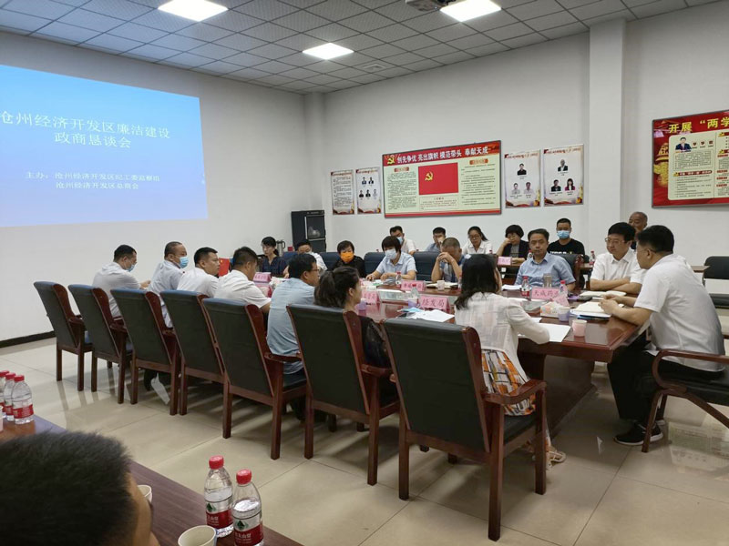9月15日,滄州經(jīng)濟開(kāi)發(fā)區紀工委監察組、區總商會(huì )在河北天成藥業(yè)股份有限公司組織召開(kāi)了醫藥行業(yè)廉潔建設政商懇談會(huì ),區黨工委委員,紀工委書(shū)記、監察組組長(cháng)唐小明參加并講話(huà)。