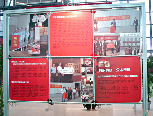 在此次全國藥品交易會(huì )上,組委會(huì )舉辦了60屆專(zhuān)題回顧活動(dòng)。在“眾志成城,抗震救災——用我們的愛(ài)心給你們力量”大型圖片展,對全國醫藥企業(yè),在四川汶川地震時(shí)的奉獻愛(ài)心活動(dòng)進(jìn)行了報導,并刊登了我公司王振剛總經(jīng)理以及我公司員工捐款活動(dòng)的大幅照片,四川醫藥工業(yè)協(xié)會(huì )向支持抗震救災的藥界同仁,表示衷心感謝和致敬。全國藥品交易會(huì )組委會(huì )表示,為了支持災區重建,全國藥品交易會(huì )將在四川連續舉辦三次。