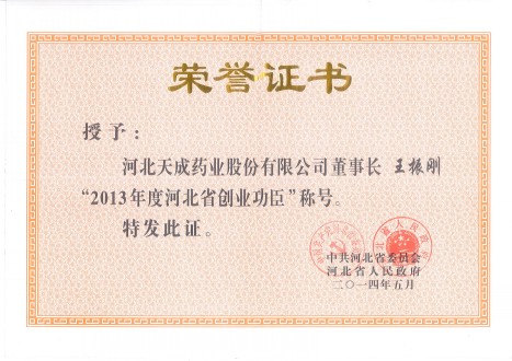 公司董事長(cháng)、總經(jīng)理王振剛榮獲河北省“創(chuàng )業(yè)功臣”稱(chēng)號