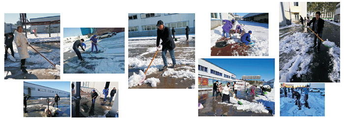 為了避免大雪對生產(chǎn)造成影響,車(chē)間主任吳俊川第一時(shí)間組織帶領(lǐng)我們掃雪。大家積極地投入到鏟雪行動(dòng)中。雖然雪積得比就厚,天氣比較冷,但這一點(diǎn)也沒(méi)有影響我們鏟雪的熱情和工作放率,作為一名員工,掃雪是貴任,更是義務(wù)。潔白的積雪映照著(zhù)一張張因勞動(dòng)而泛紅的臉龐,大家樂(lè )在其中。不一會(huì )兒,輸液一車(chē)間有人出來(lái)了,儲運部的人員也出來(lái)了,辦公樓上后勤人員也出來(lái)掃雪了,掃雪隊伍越來(lái)越大,一時(shí)間整個(gè)廠(chǎng)區主要干道和物流通道都是掃雪的人,形成了一道靚麗的風(fēng)景線(xiàn)。