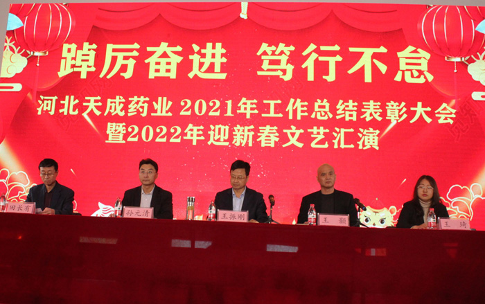 2021年已然過(guò)去,回顧這一年,我們與黨同慶百年華誕,我們細數黨和人民取得的累累碩果。盤(pán)點(diǎn)這一年,天成藥業(yè)緊跟黨的領(lǐng)導,在踐行“制好藥,為人民”的征途上,戮力同心,奮勇拼搏,攻堅克難,天成人同樣取得了令人欣慰的成績(jì)。站在兩個(gè)百年交匯處,感悟百年光輝史,賡續奮斗寫(xiě)華章。為豐富職工文化生活,營(yíng)造喜慶、感恩。拼搏的文化氛圍,展現天成藥業(yè)奮發(fā)有為的精神風(fēng)貌,1月25日, 公司舉辦了“踔回奮進(jìn).篤行不息。一起向未來(lái)”--2021年工作表彰大會(huì )暨2022年迎新春職工文藝匯演活動(dòng)。工作總結大會(huì )上30余個(gè)集體或班組以及100余名干部員工受到了表彰。